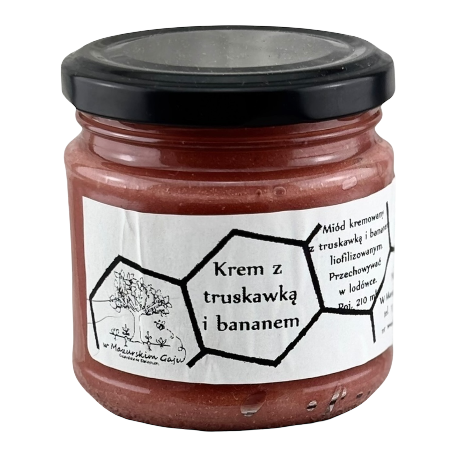 SKŁAD: Kremowany miód wielokwiatowy, liofilizowana truskawka i banan
