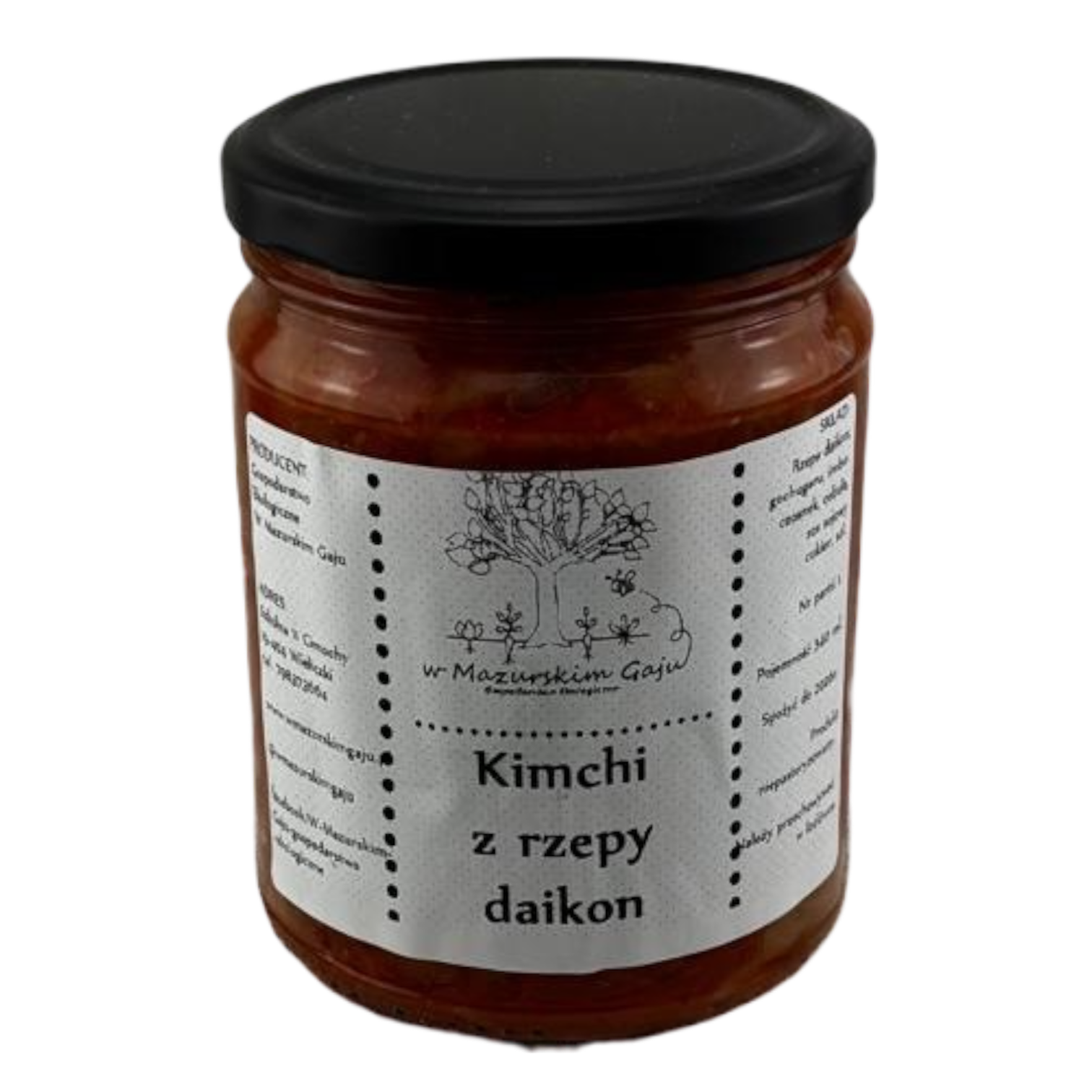 SKŁAD: Rzepa daikon, cebula, czosnek, imbir, papryka gochugaru, sos sojowy, sól kłodawska niejodowana.