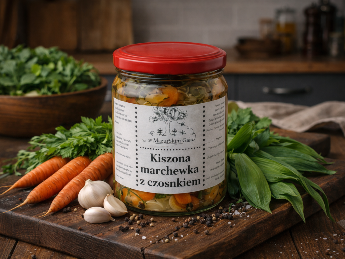 kiszona ekologiczna marchewka z pietruszką i liśćmi czosnku niedźwiedziego w codziennej kuchni