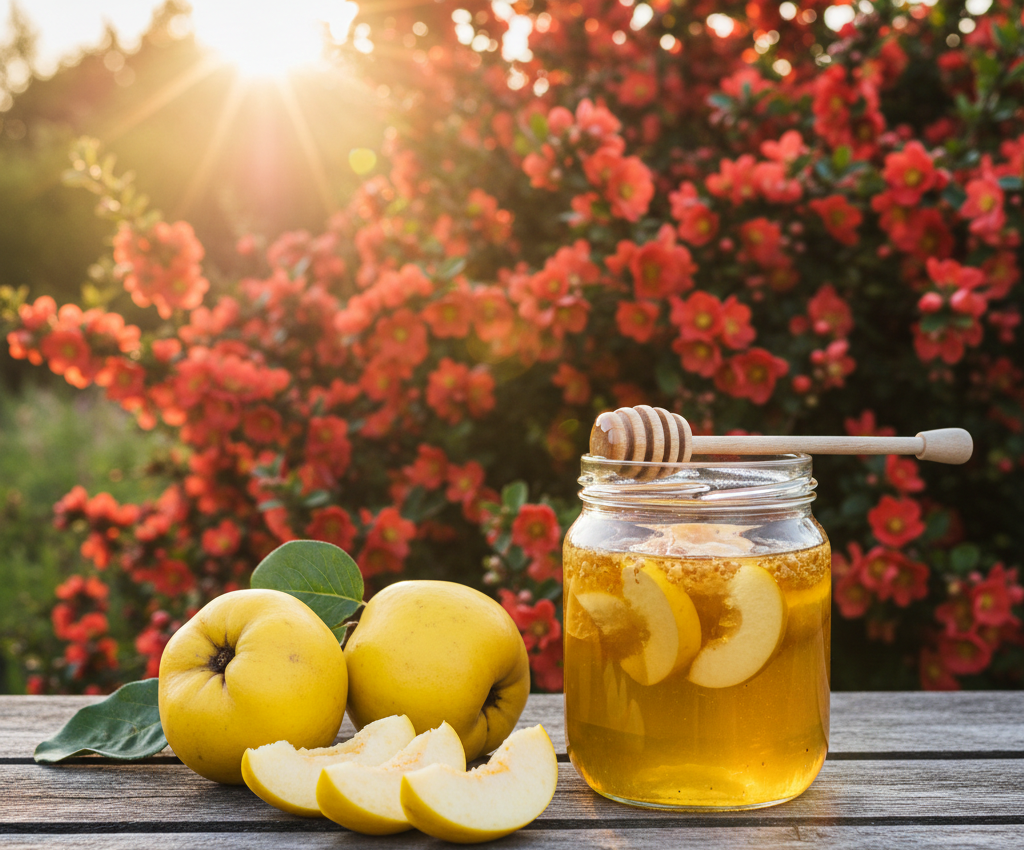 Miody rzemieślnicze z dodatkiem owoców – pigwowiec w miodzie bez pasteryzacji